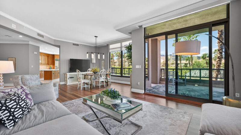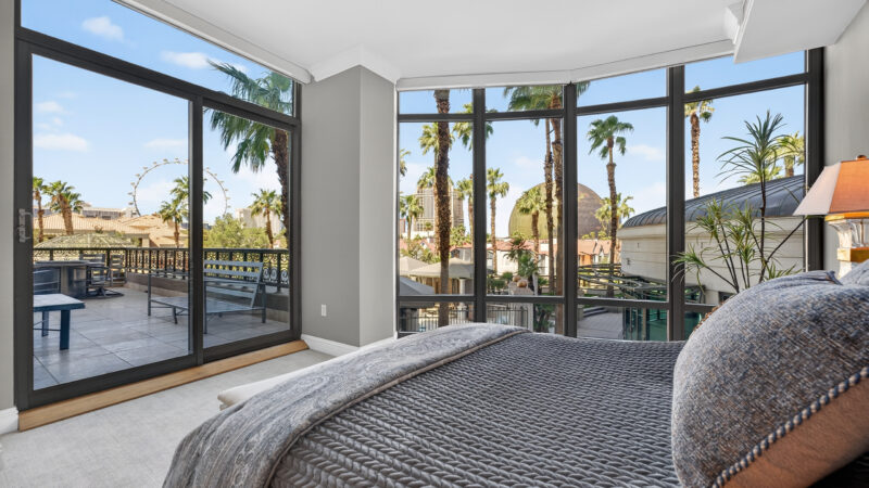 This isn’t just a condo; it’s a high-design sanctuary. Every room in this highly upgraded home is oriented toward the neon glow of the Strip.