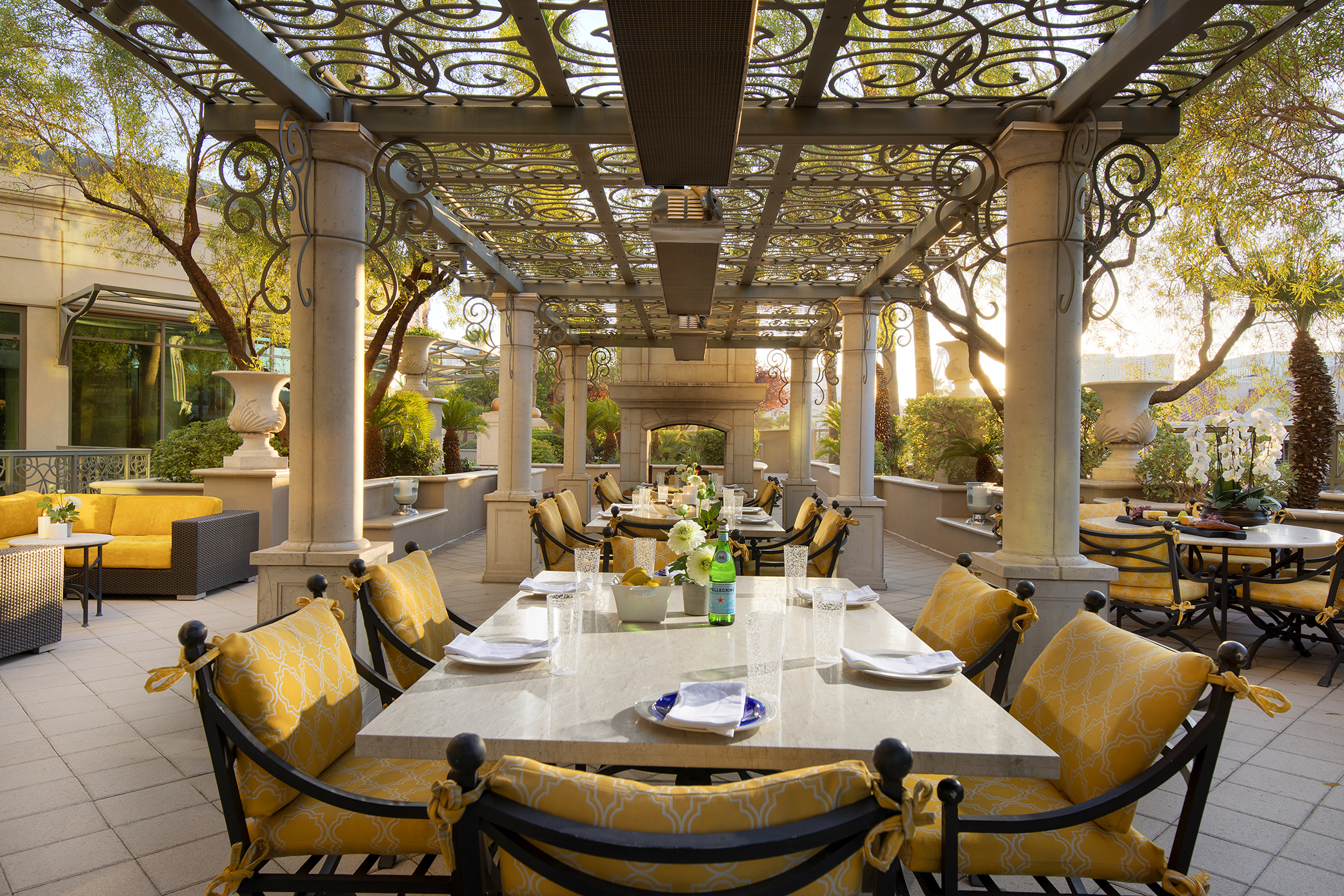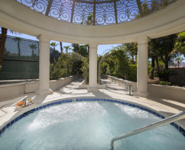 Your primary suite offers a private terrace with Sphere views, a custom walk-in closet, and a spa-inspired bath with a jetted soaking tub, separate shower, and bidet—all finished in luxurious marble. Each secondary bedroom features its own ensuite bath and ceiling fan for ultimate comfort.