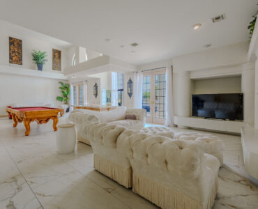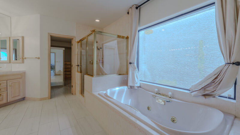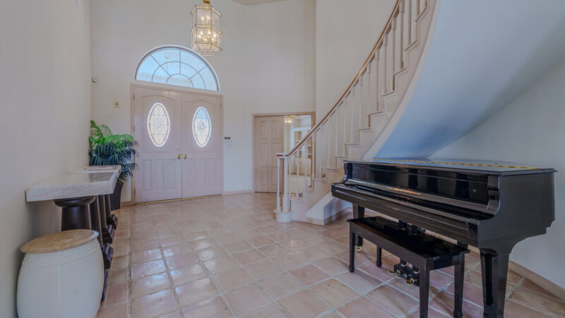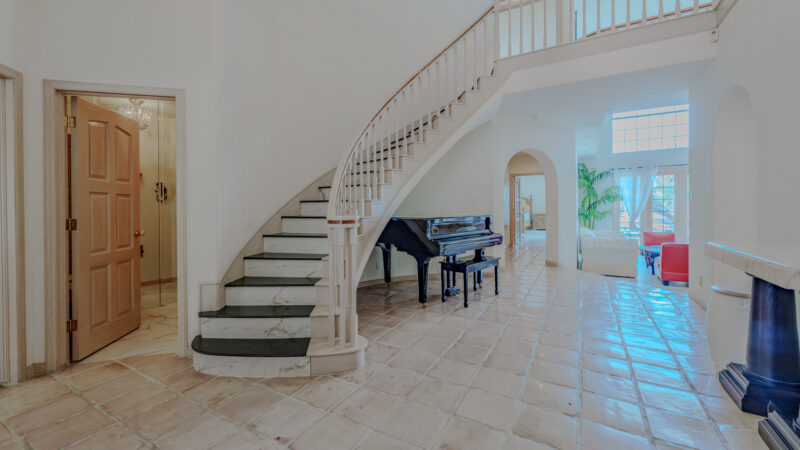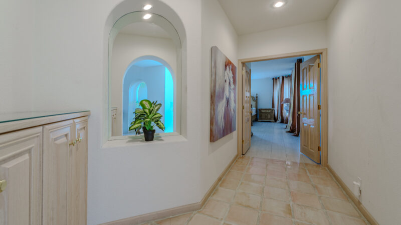 - Exterior features: Architecture Style: Two Story, Attached, Bedroom on Main Level, Ceiling Fan(s), Central Vacuum, Floor Covering: Ceramic, Flooring: Ceramic, Garage, Garage Door Opener, Gated, Guard, Inside Entrance, Pool, Primary Downstairs, Private, Security System, Security System Owned, Storage, Tennis Court(s), Walk In Closet, Water Softener Owned, Window Treatments