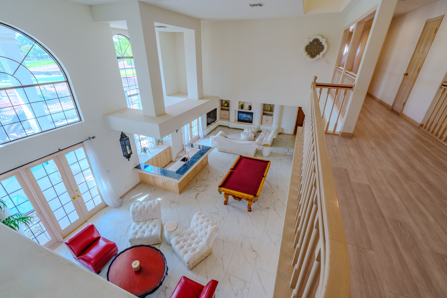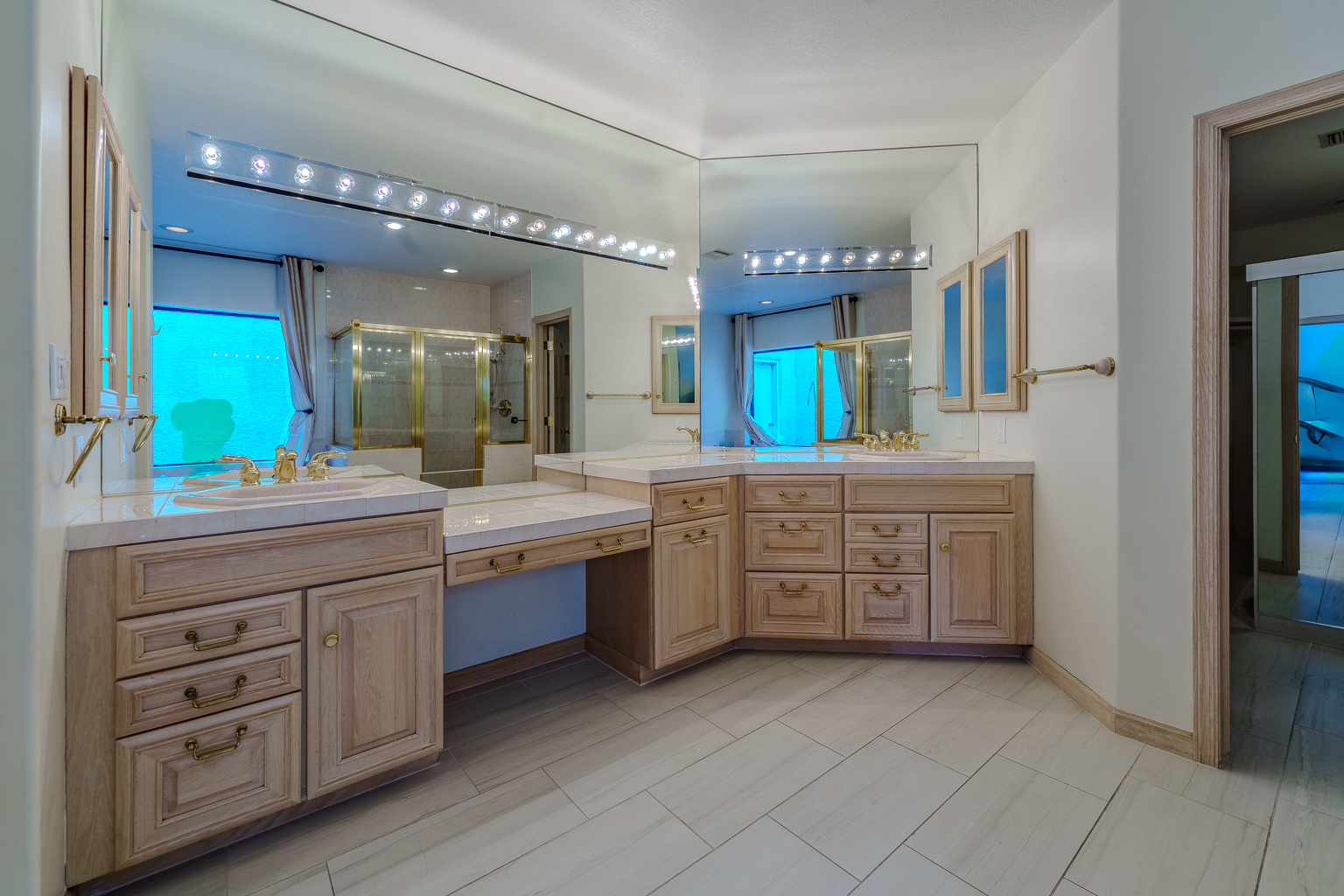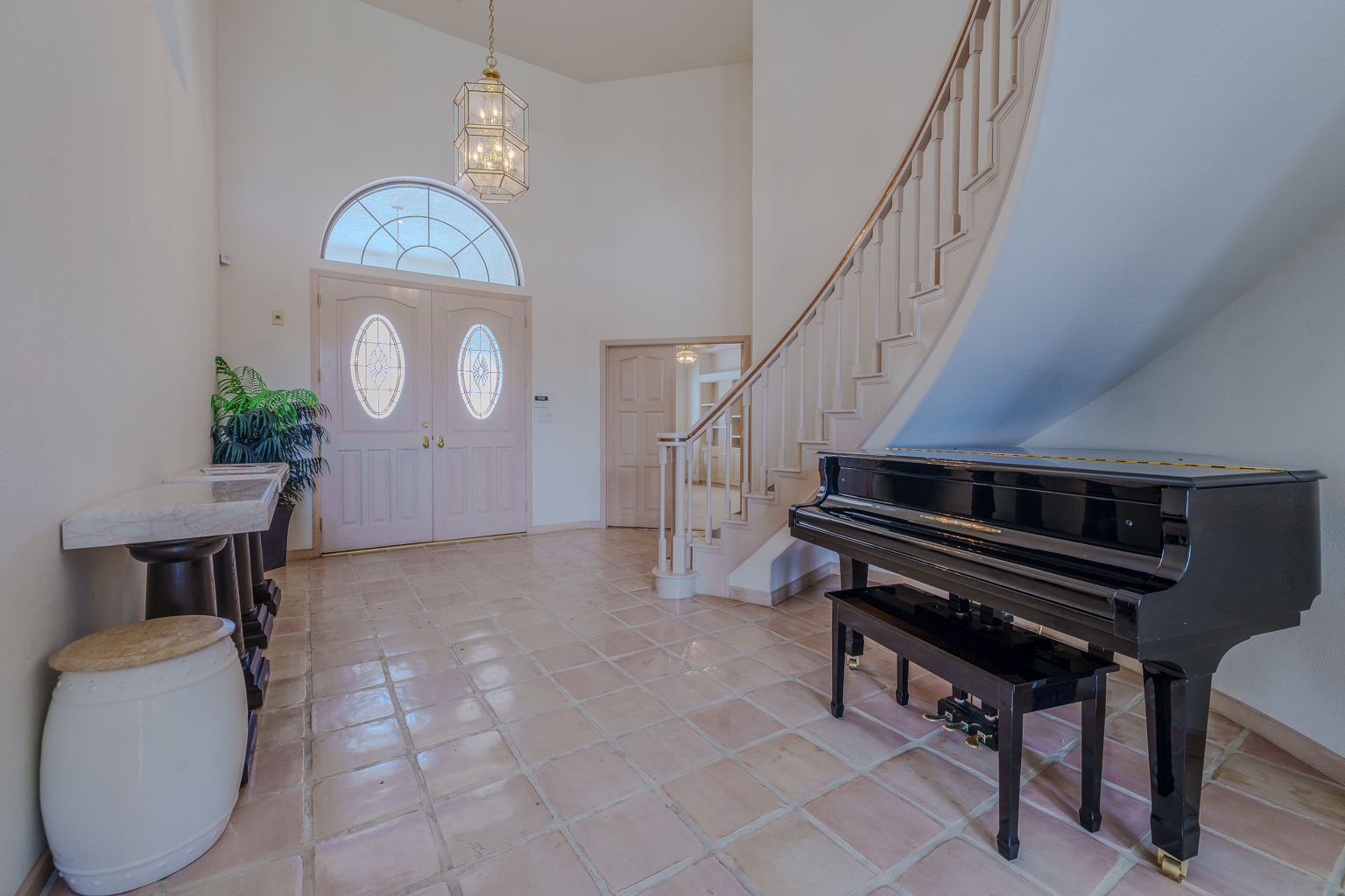 - Exterior features: Architecture Style: Two Story, Attached, Bedroom on Main Level, Ceiling Fan(s), Central Vacuum, Floor Covering: Ceramic, Flooring: Ceramic, Garage, Garage Door Opener, Gated, Guard, Inside Entrance, Pool, Primary Downstairs, Private, Security System, Security System Owned, Storage, Tennis Court(s), Walk In Closet, Water Softener Owned, Window Treatments
