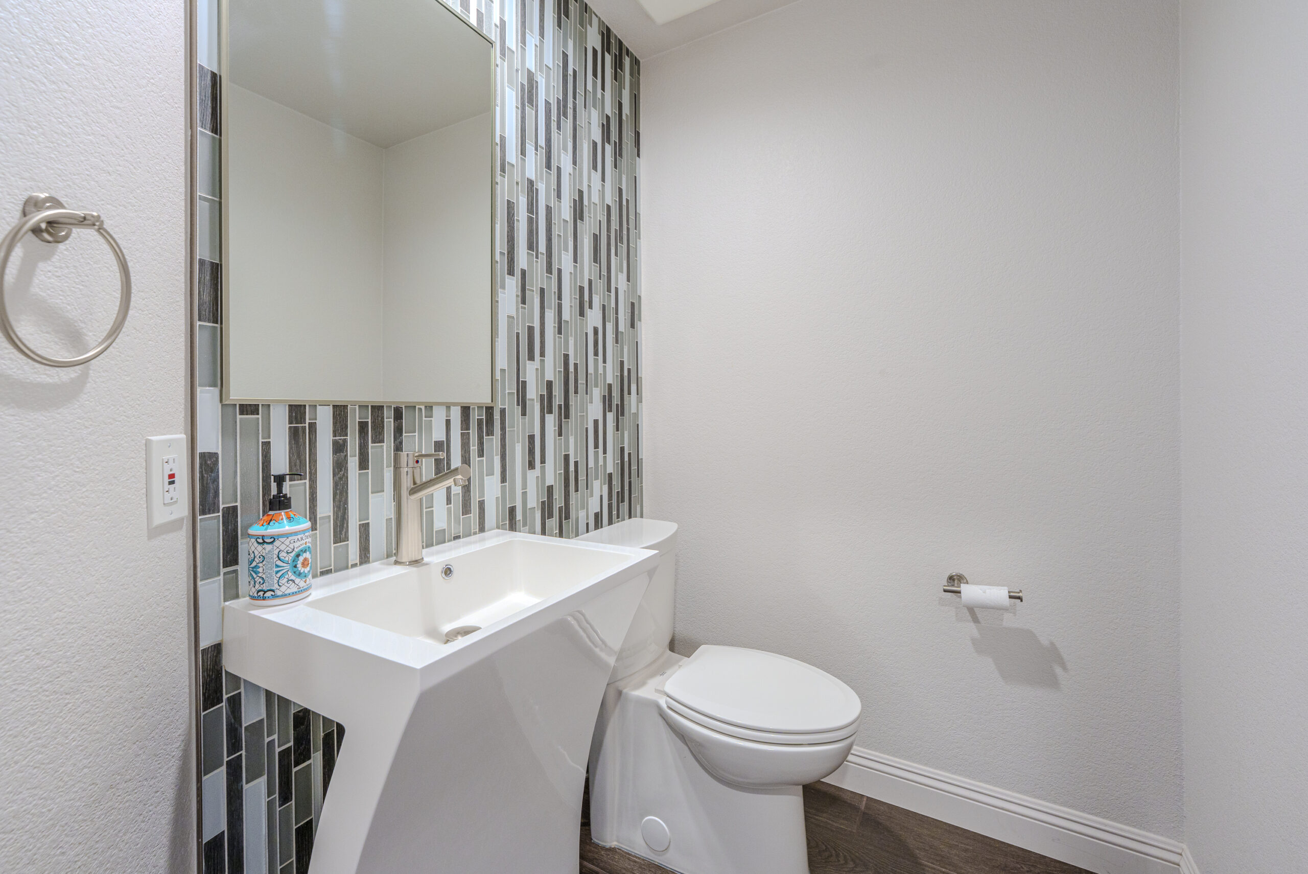 The second bedroom also has its own updated bath for added convenience. The home features a charming courtyard entry and a wrap-around patio, perfect for outdoor enjoyment.