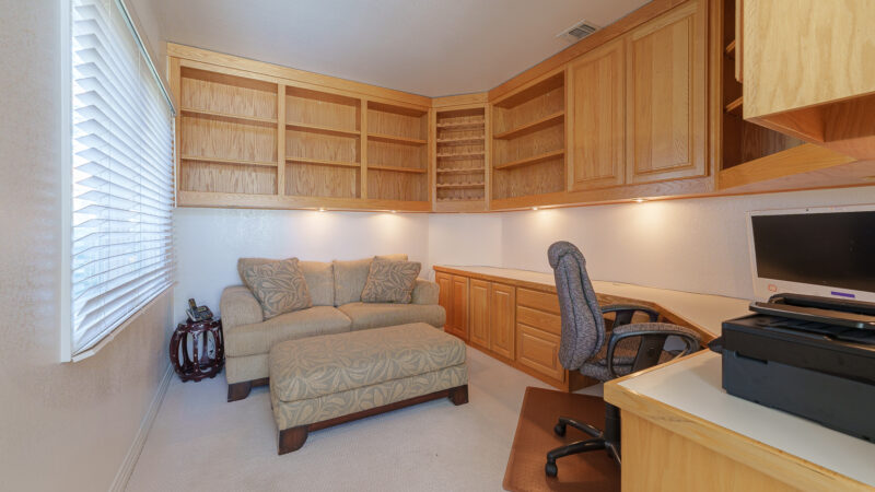 • Flexible Living: A separate den with a built-in desk and shelving provides the perfect home office.