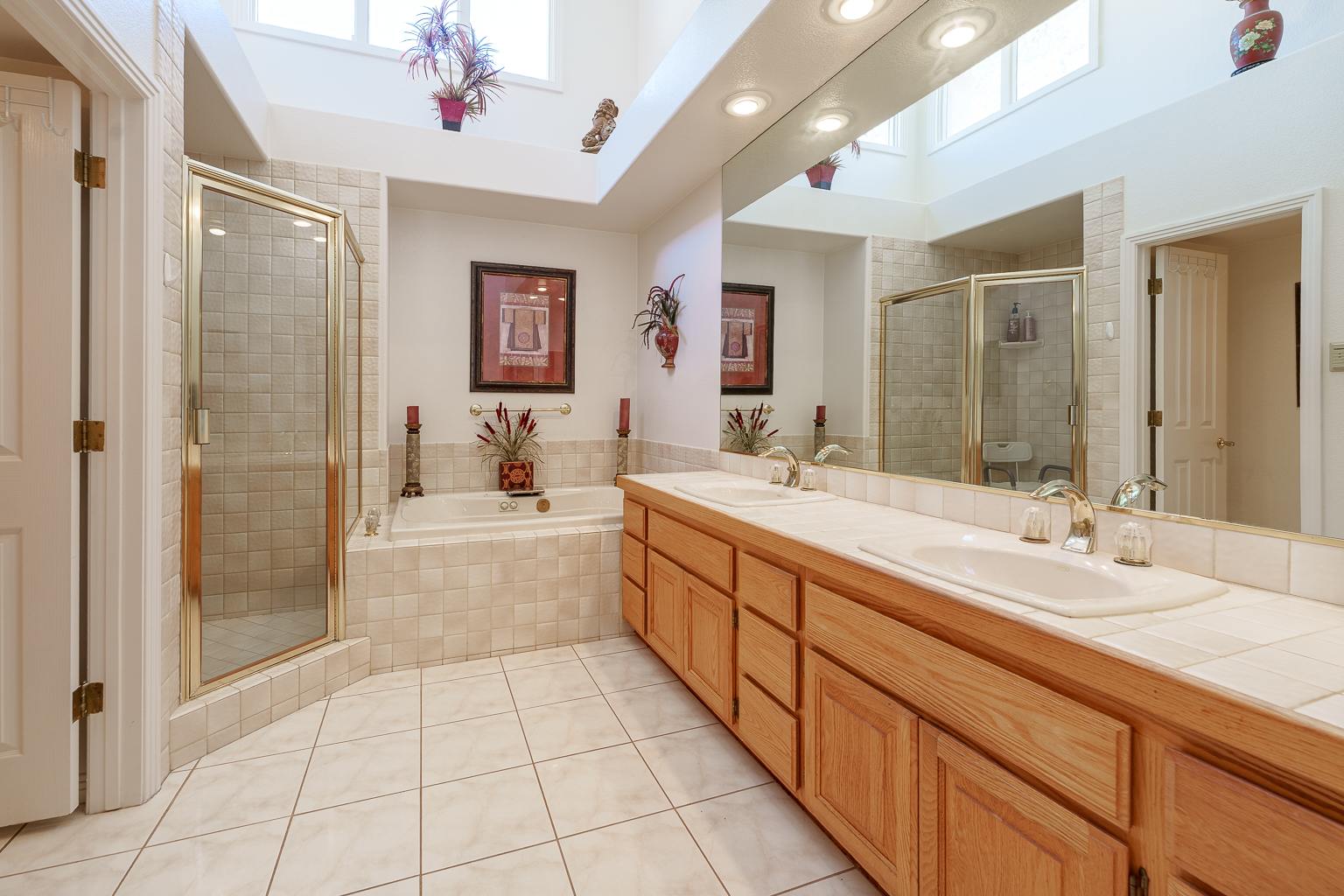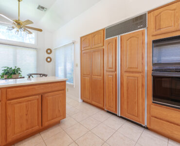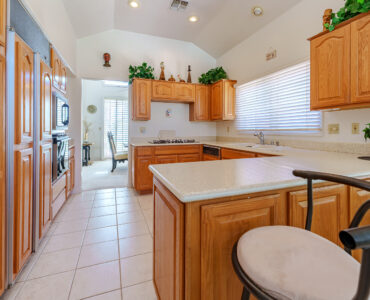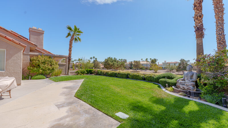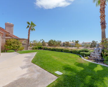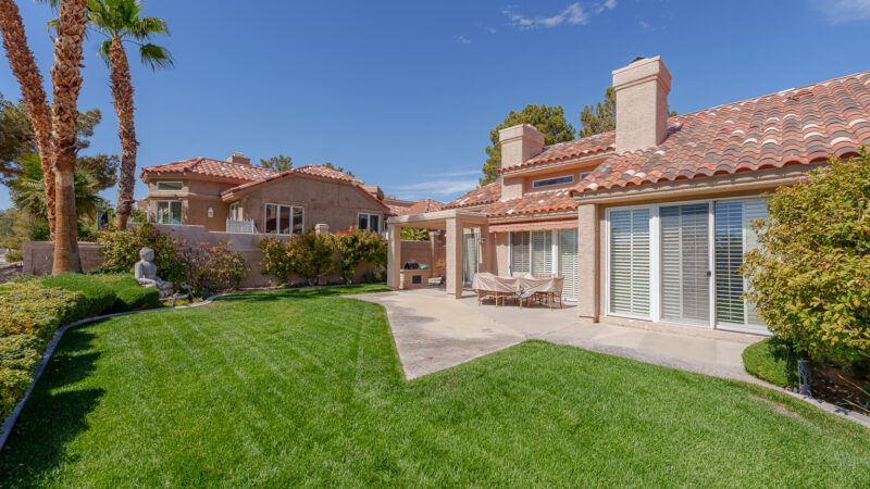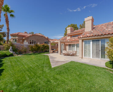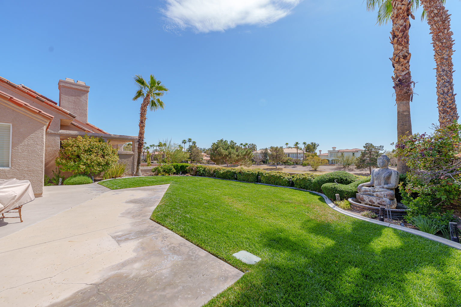 The deep backyard is a desert oasis featuring a built-in barbecue, patio, and professional landscaping. Enjoy your morning coffee overlooking the water and fairways in one of the most secure and quiet pockets of the 89113 zip code.