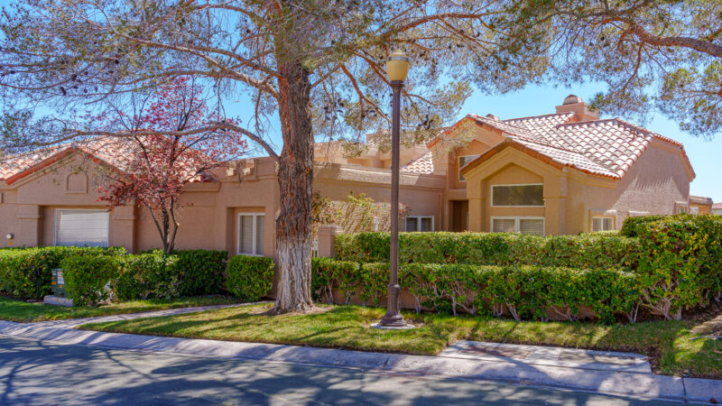 Experience the pinnacle of Las Vegas luxury at 8181 Round Hills Cir, a meticulously maintained single-story end unit located in the prestigious Gardens West at Spanish Trail. This 1,910 sq. ft. “Gardens B” model sits on an elevated lot, offering breathtaking, unobstructed views of the lush green golf course, serene lake, and distant mountains.