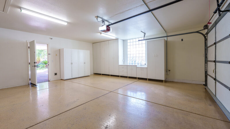Car Enthusiast Dream: 3-Car Air Conditioned Garage with epoxy floors and built-in storage.